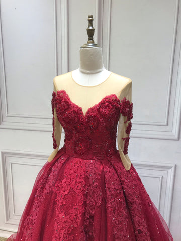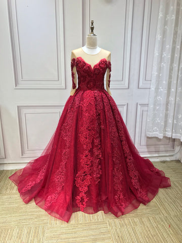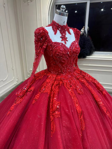 Handmade beading work is not just about adding a touch of glamour—it’s about telling a story. Whether it’s intricate floral beading that represents growth and beauty, or a more abstract design symbolizing a unique love story, these details make each gown one-of-a-kind. Brides who choose a red lace ball gown with handmade beading are selecting a dress that speaks to their individual journey, creating a connection between their personal style and the art of the gown.